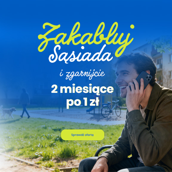 „Zakabluj sąsiada” to nasza sąsiedzka promocja, w której zyskujecie Ty i Twój znajomy. Jeśli jesteś już naszym Klientem i polecisz nasze usługi znajomemu, sąsiadowi lub komuś z rodziny, a ta osoba zdecyduje się podpisać z nami nową umowę na 24 miesiące – oboje otrzymacie Internet światłowodowy po 1 zł miesięcznie na 2 miesiące. Bez haczyków, bez ukrytych kosztów – po prostu dobra współpraca i szybki Internet, który łączy nie tylko urządzenia, ale i ludzi.